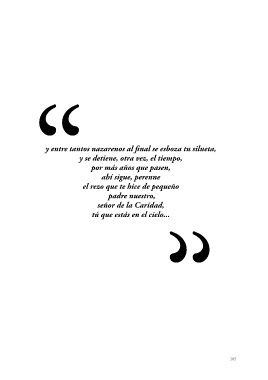“y entre tantos nazarenos al final se esboza tu silueta, y se detiene, otra vez, el tiempo, por más años que pasen, ahí sigue, perenne el rezo que te hice de pequeño padre nuestro, “señor de la Caridad, tú que estás en el cielo... 105