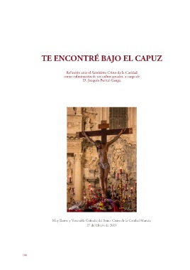 TE ENCONTRÉ BAJO EL CAPUZ Reflexión ante el Santísimo Cristo de la Caridad como culminación de sus cultos anuales, a cargo de D. Joaquín Bernal Ganga Muy Ilustre y Venerable Cofradía del Stmo. Cristo de la Caridad Murcia, 27 de febrero de 2021 108