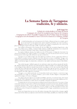 nueva de la ciudad y eso se hace de manifiesto en la mayoría de casas de los tarraconenses, donde la tradición El silencio es uno de los hechos característicos de la Semana Santa tarraconense, ayudando a los pe-
