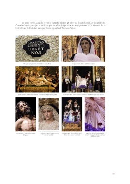 inicial de las Reglas. El Cristo de la Caridad en su traslado La Virgen de la Penas, imagen mariana El misterio de la Hermandad de Santa Un clavel rojo brota entre los lirios